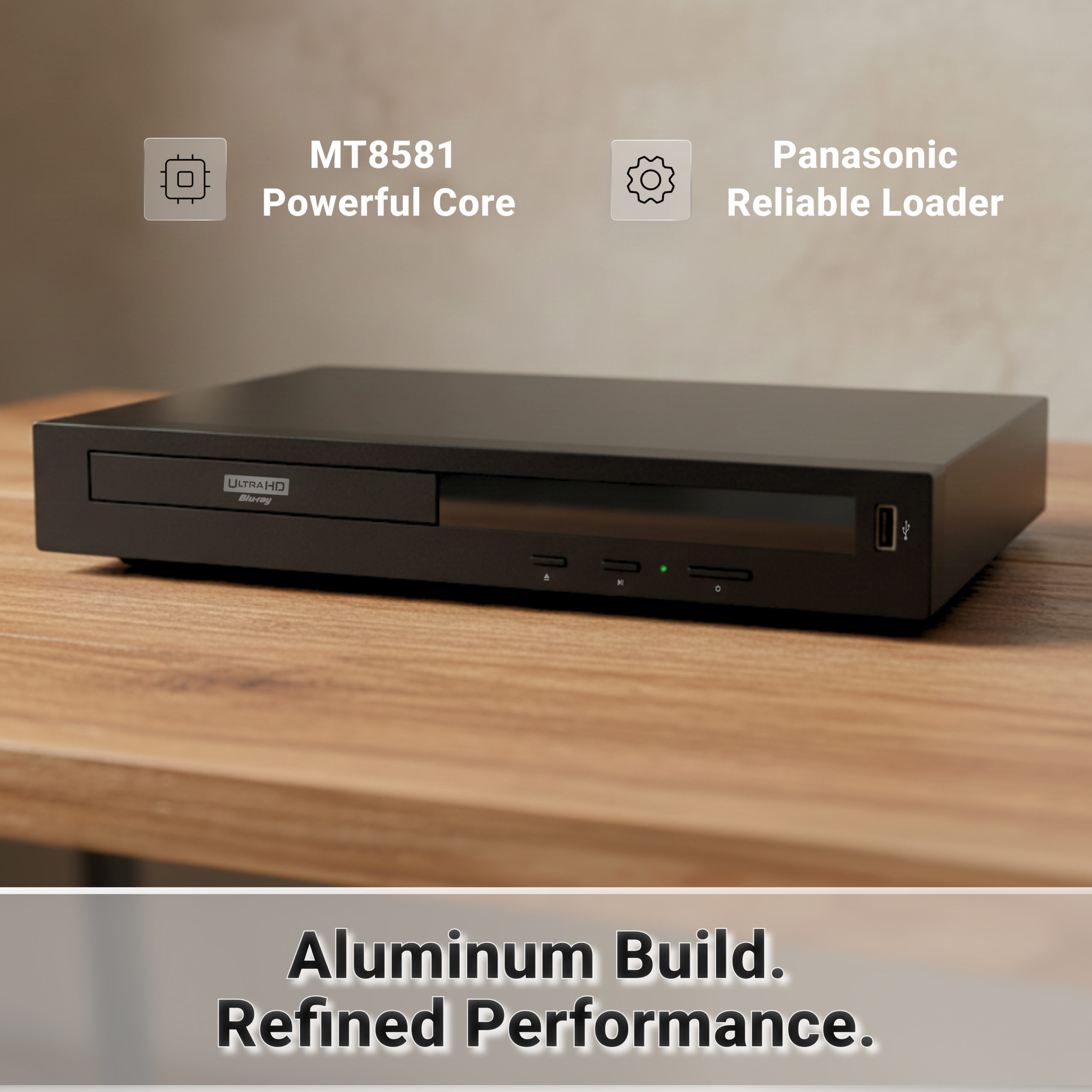 Med flaggskipprosessoren MediaTek MT8581 og et ekstra stillegående Panasonic-drivverk, garanteres du en stabil og feilfri filmopplevelse. Spilleren er skreddersydd for samlere: Den takler alt fra 4K Blu-ray og SACD, til ISO-filer og importfilmer på Blu-ray og DVD.