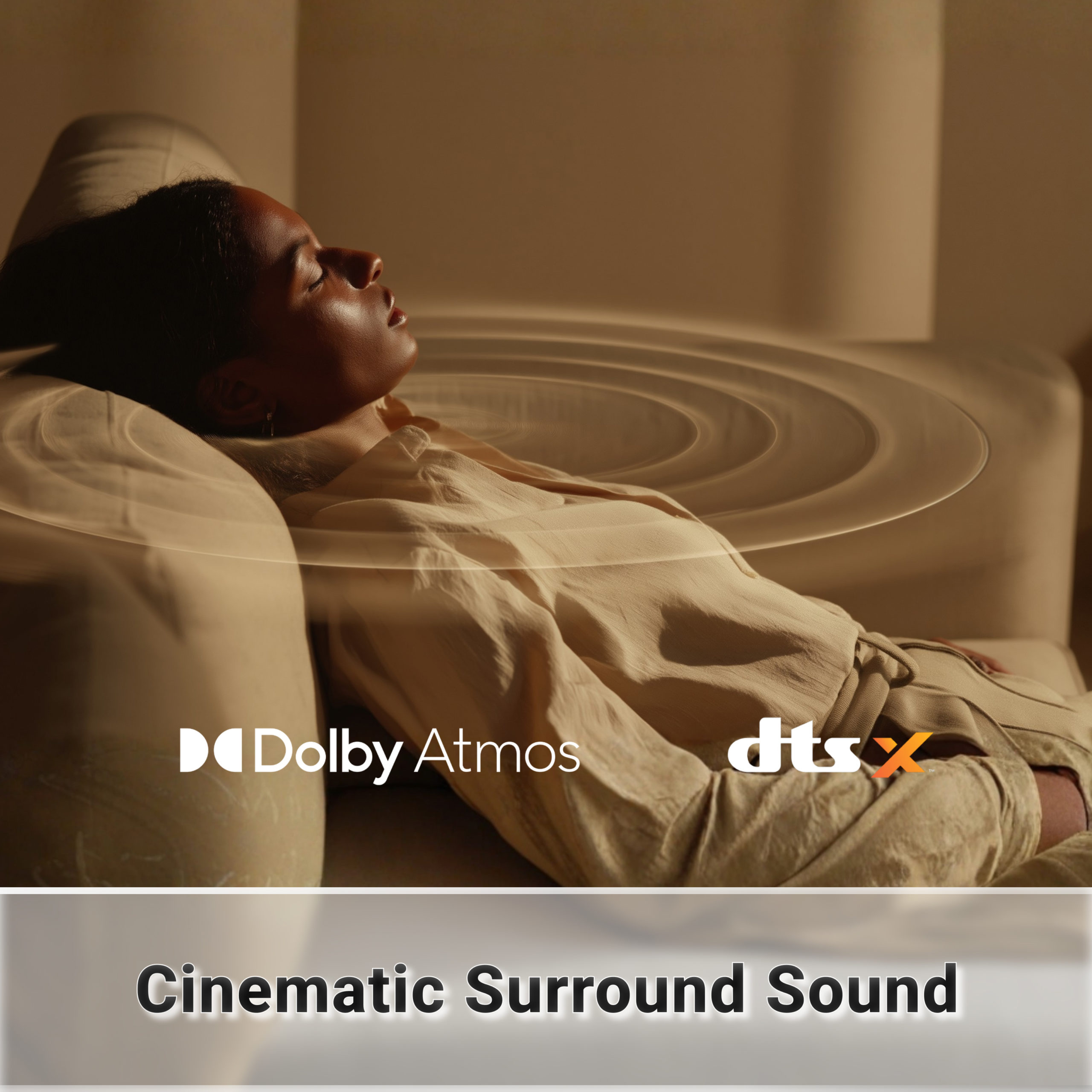 Optimal lyd: Dedikert HDMI-utgang kun for lyd (Audio-visual separation), med støtte for Dolby Atmos og DTS:X.